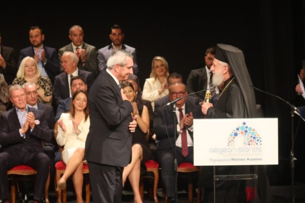 Τέλος ο Περιφερειάρχης Ν. Αιγαίου κ. Γιώργος Χατζημάρκος ιδιαίτερα συγκινημένος που για τρίτη φορά ορκίζεται ως περιφερειάρχης νοτίου Αιγαίου, στο χαιρετισμό του έκανε λόγο για ευθύνη και εντολή αποστολής, κσι αναφέρθηκε στις επιδόσεις των νησιών σε διάφορους τομείς.