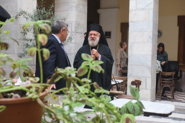 Ο Σεβασμιώτατος, αφού ευχαρίστησε τον Πρόεδρο του Δικηγορικού Συλλόγου Σύρου κ. Φιφλή για την ευγενική πρόσκλησή του, ευχήθηκε σε όλους υγεία και δύναμη στην ευθυνοφόρο αποστολή τους και υπενθύμισε ότι στις δικαστικές Αίθουσες της Σύρου υπηρέτησαν δικαστές περιωπής, με λιπαρή γνώση της δικαιοσύνης, οι οποίοι κατεκόσμησαν τις δικαστικές έδρες, πολλοί δε από τους οποίους δίδαξαν πολλούς με τη σοφία και την ευθυκρισία τους.