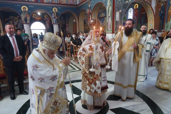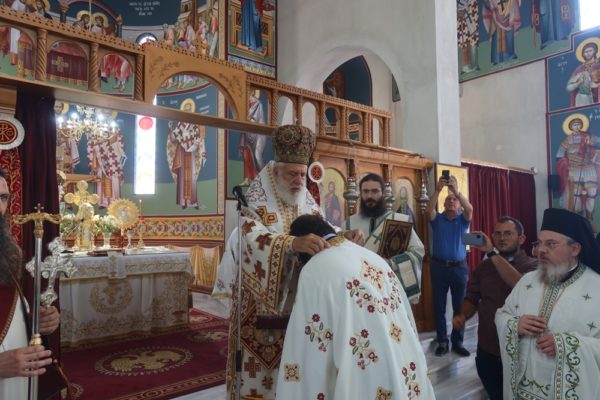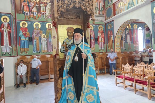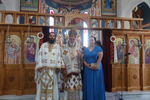 Ο Σεβασμιώτατος συνιερούργησε μετά του Σεβασμιωτάτου κ. Ιωήλ, με την παρουσία προσκυνητών από τη Σύρο και τη Μύκονο, του Δημάρχου και Αντιδημάρχων Αριδαίας, του Προέδρου της Τοπικής Κοινότητας, Μελών του τοπικού πολιτιστικού Συλλόγου και πλήθους πιστών, οι οποίοι είχαν κατακλύσει το Ναό και τους πέριξ αυτού χώρους.