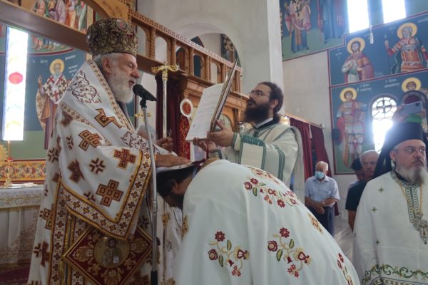 Προ δε του πέρατος της Θείας Λειτουργίας, κατά παραχώρηση και προτροπή του Σεβασμιωτάτου κ. Ιωήλ, χειροθέτησε Πρωτοπρεσβύτερο τον Εφημέριο του Ναού, π. Αθανάσιο, ο οποίος εργάζεται φιλοτίμως για τον εξωραϊσμό και τον ευπρεπισμό του και τον οποίο προέτρεψε να ευγνώμων προς τον Επίσκοπό του, να τον σέβεται και να τον υπακούει!