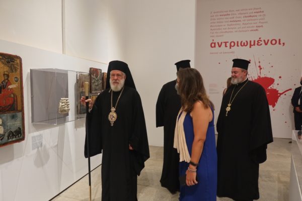 Με την παρουσία της Υπουργού Πολιτισμού κας Λίνας Μενδώνη, της Βουλευτού Κυκλάδων της ΝΔ κας Αικατερίνας Μονογυιού, του Χωρικού Αντιπεριφερειάρχη Κυκλάδων κ. Γ. Λεονταρίτη, του Θεματικού Αντιπεριφερειάρχη Διαφάνειας κ. Στυλ. Μπρίγγου, του Δημάρχου Μυκόνου κ. Κωνστ. Κουκά, Δημοτικών Συμβούλων, του Λιμενάρχη Μυκόνου, και ολίγων προσκεκλημένων, ο Σεβασμιώτατος μητροπολίτης Σύρου κ. Δωρόθεος Β’, συνοδευόμενος από τους Αρχιερατικούς Επιτρόπους Μυκόνου και Άνω Μεράς και τους Εφημερίους της νήσου, τέλεσε χθες στο Αρχαιολογικό Μουσείο Μυκόνου τα εγκαίνια της Έκθεσης με τίτλο «Το αρχιπέλαγος φλέγεται», η οποία τελεί υπό την αιγίδα της Προέδρου της Δημοκρατίας και την οποία διοργανώνει η Εφορεία Αρχαιοτήτων Κυκλάδων, σε συνεργασία με τον Δήμο Μυκόνου, συμμετέχοντας στους εορτασμούς για τη συμπλήρωση 200 ετών από την Επανάσταση του 1821.