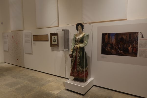 Στην Έκθεση κυριαρχεί η αναφορά στην Μυκόνια ηρωίδα Μαντώ Μαυρογένους, την Bella Greca, που αποτελεί την προσωποποίηση της ανιδιοτελούς προσφοράς στον απελευθερωτικό αγώνα, με την διάθεση του συνόλου της μεγάλης οικογενειακής της περιουσίας και την προσωπική της συμμετοχής σε πολεμικά επεισόδια του αγώνα.