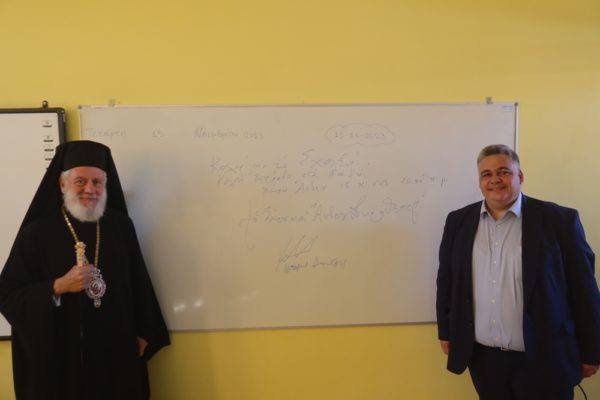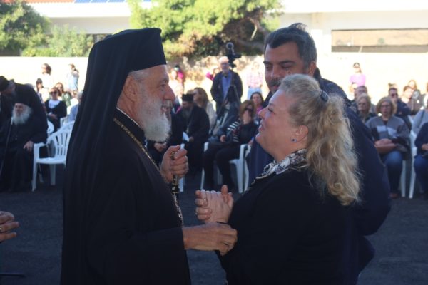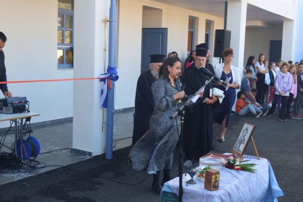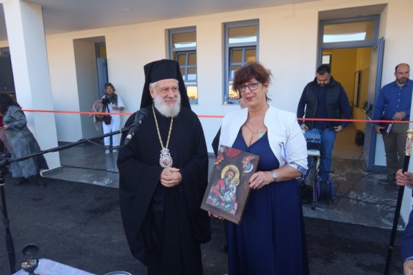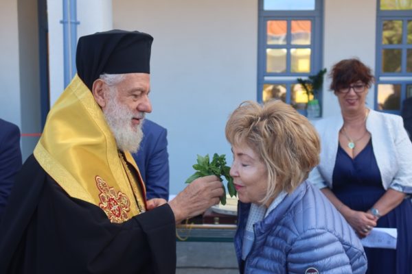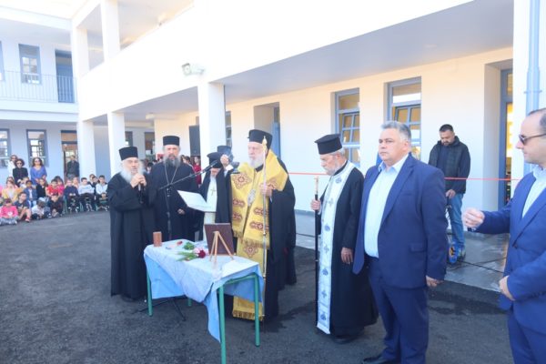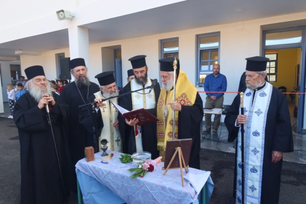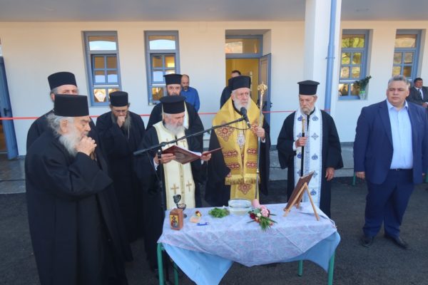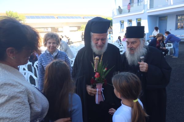 Στην προσλαλιά του, ο Σεβασμιώτατος κ. Δωρόθεος Β΄ ευχήθηκε το νέο Σχολείο να αποτελέσει όντως ” καταφύγιο στις συμφορές της ζωής” κατά το λόγο του Πλουτάρχου, προσφέροντας στους μαθητές και τις μαθήτριες Παιδεία, που κατά τον Μέγα Βασίλειο είναι «μόνη των κτημάτων αναφαίρετον και ζώντι και τελευτήσαντι τω ανθρώπω παραμένουσα», συνεχἀρη την Διευθύντρια του Σχολείου κα Μαργαρίτα Κροκοδείλου και τους Εκπαιδευτικούς, στους οποίους ευχήθηκε δύναμη και επιτυχία στο έργο τους και προσἐφερε εικόνα της Παναγία, με την ευχή η Θεοτόκος να προστατεύει και να σκεπάζει με τη μητρική της αγάπη το Σχολείο, τους εκπαιδευτικούς και τους μαθητές του.