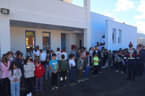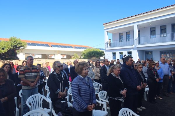 Χαιρετισμούς, επἰσης, απηύθυναν ο Έπαρχος και ο Δήμαρχος Άνδρου, η Διευθύντρια Πρωτοβάθμιας Εκπαίδευσης Κυκλάδων, η Διευθύντρια του Σχολείου, ο Πρόεδρος του Συλλόγου Γονέων και Κηδεμόνων και απενεμήθησαν τιμητικές διακρίσεις σε όσους συνέβαλαν στη γρήγορη υλοποίηση του έργου.