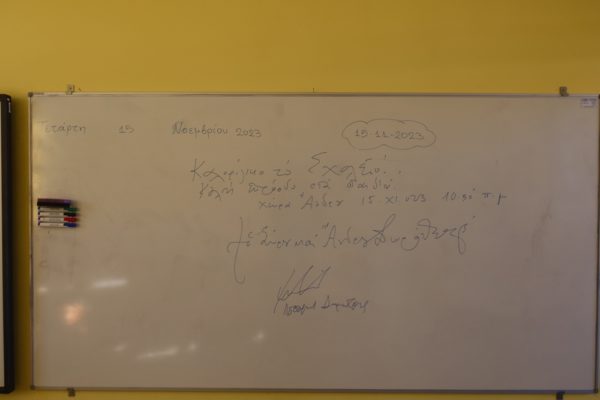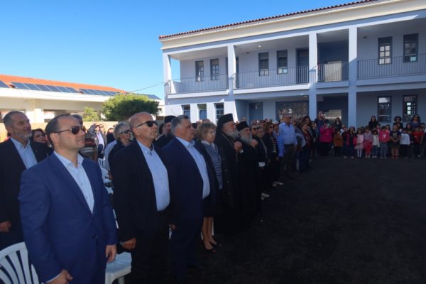 Απευθυνόμενος δε προς τους μαθητές τους συμβούλεψε να αντιμετωπίζουν το σχολείο τους σαν το σπίτι τους και να το διατηρούν καθαρό και λαμπρό, όπως τη σημερινή μέρα των Εγκαινίων του.