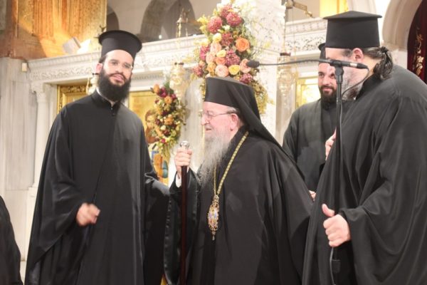 Συγχοροστάτησαν οι Σεβασμιώτατοι Μητροπολίτες Βρυούλων κ. Παντελεήμων, Σερρών κ. Θεολόγος, Σύρου κ. Δωρόθεος Β’, Τρίκκης κ. Χρυσόστομος και Λαγκαδά κ. Πλάτων.