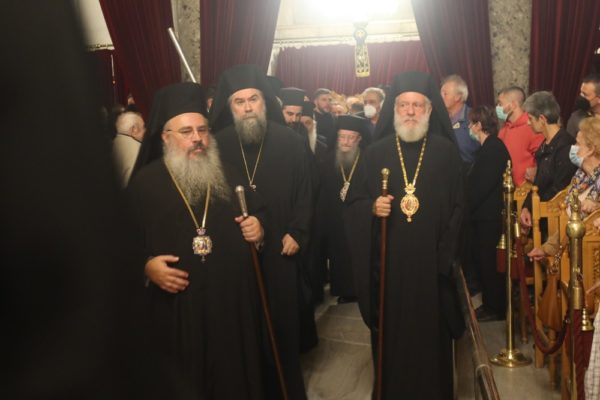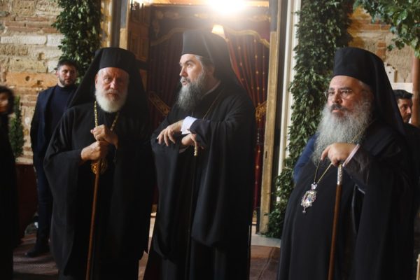 Συγχοροστάτησαν οι Σεβασμιώτατοι Μητροπολίτες Βρυούλων κ. Παντελεήμων, Σερρών κ. Θεολόγος, Σύρου κ. Δωρόθεος Β’, Τρίκκης κ. Χρυσόστομος και Λαγκαδά κ. Πλάτων.