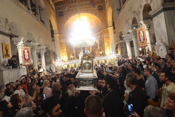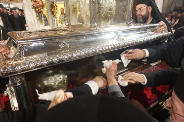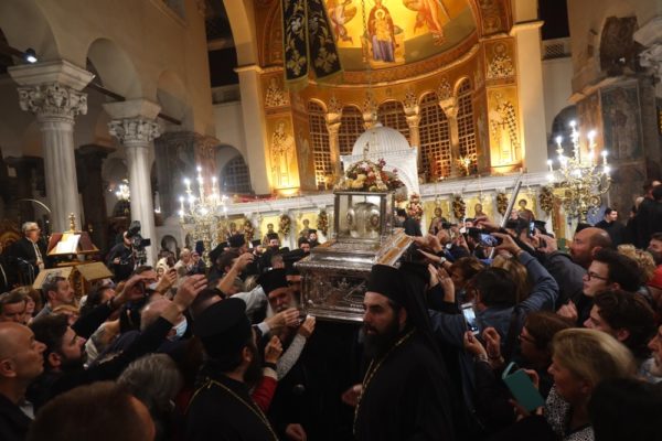 Χιλιάδες πιστοί κατέκλυσαν το εσωτερικό και τους αύλειους χώρους του Ιερού Ναού Αγίου Δημητρίου Θεσσαλονίκης, κατά την Ακολουθία του Μύρου του Αγίου Δημητρίου του Μυροβλήτη, που τελέσθηκε χθες προεξάρχοντος του Παναγιωτάτου Μητροπολίτη Θεσσαλονίκης κ. Άνθιμου.