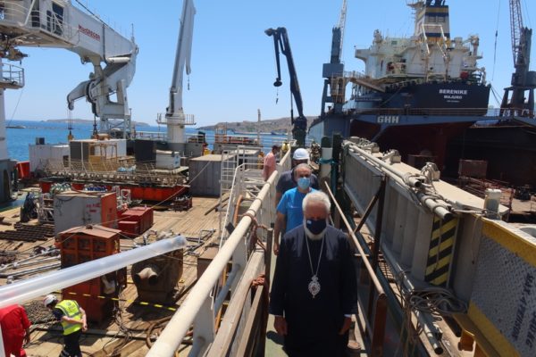 Στο Ναυπηγείο “Νεώριο” στην Ερμούπολη βρέθηκε ο Σεβασμιώτατος Μητροπολίτης Σύρου κ. Δωρόθεος Β’ την Τρίτη 13 Ιουλίου και είδε από κοντά τις εργασίες που γίνονται στο πλοίο “Αριάδνη”.