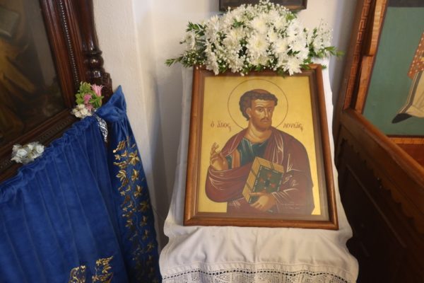 Επανελθούσης της λιτανείας και προ της Απολύσεως, ο Σεβασμιώτατος κ. Δωρόθεος Β΄ μίλησε στο εκκλησίασμα για τη ζωή και το έργο του Αποστόλου Λουκά, εξηγώντας γιατί ονομάσθηκε “Ευαγγελιστής των πτωχών και του ελέους” και πώς με τις αναφορές του στα κείμενα του τίμησε και προέβαλε τη γυναίκα, της οποίας η θέση ήταν τόσο υποβαθμισμένη στην εποχή του, υπογραμμίζοντας το σεβασμό και την αγάπη που έτρεφε προς το πρόσωπο της Υπεραγίας Θεοτόκου, το οποίο, κατά την παράδοση ιστόρησε σε άγιες και θαυματουργές εικόνες.
