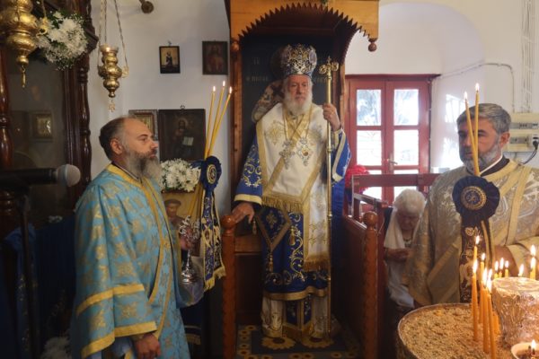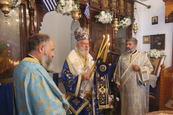 Ο Σεβασμιώτατος συμπαραστάθηκε από τον Εφημέριο του Ναού και Αρχιερατικό Επίτροπο Μυκόνου Πρωτοπρ. Πέτρο Μαραγκό και τους Διακόνους του.
