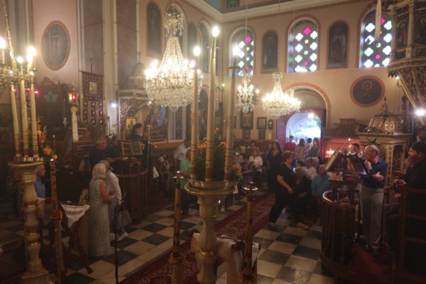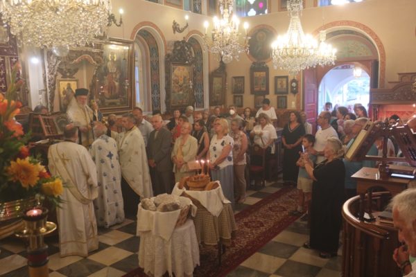 Ο Σεβασμιώτατος πλαισιώθηκε από τον Εφημέριο του Ναού και Εφημερίους Ενοριών της Σύρου, με την παρουσία του Θεματικού Αντιπεριφερειάρχη Μεταφορών Κυκλάδων κ. Μ. Δαδάου, του Αντιδημάρχου κ. Δημ. Κοσμά, και πολλών φιλαγίων προσκυνητών.
