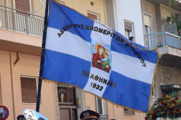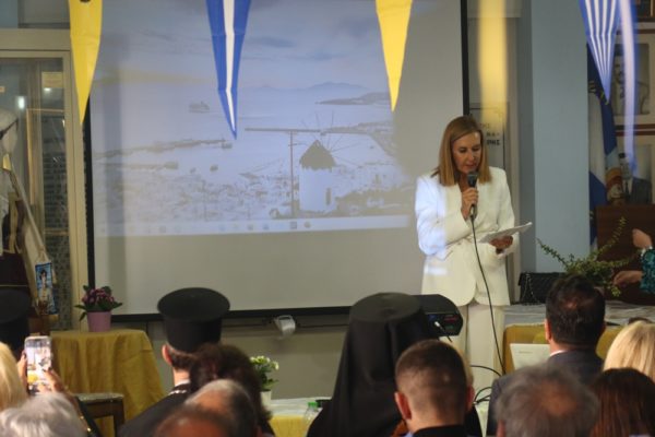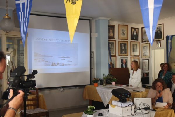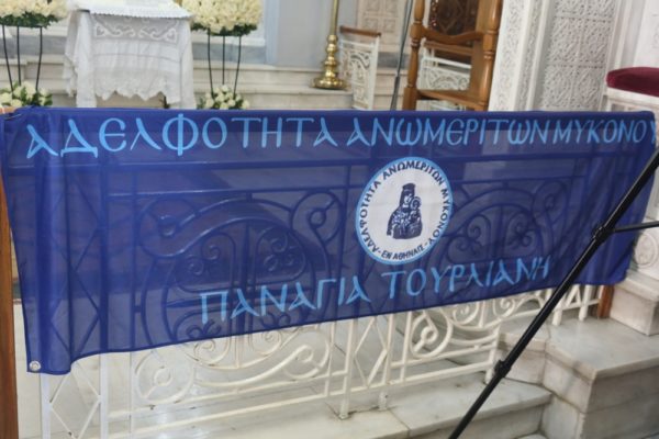 Μετά το πέρας της Θείας Λειτουργίας έγινε λιτάνευση της Εικόνας της Παναγίας Τουρλιανής, την οποία πλαισίωσε Τμήμα της Φιλαρμονικής του Δήμου Αθηναίων, προς τα Γραφεία της Αδελφότητος,όπου η διακεκριμένη Φιλόλογος κα Αικ. Χανιώτη ανέπτυξε λογοτεχνικά και με τρόπο συναισθηματικό, που προκάλεσε νοσταλγία και συγκίνηση στους ακροατές, την ιστορία και την προσφορά των Ανεμόμυλων της Μυκόνου στην κοινωνική και πολιτιστική ζωή της Μυκόνου.