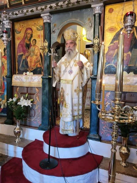 Τέλος, ευχήθηκε στον Σεβασμιώτατο κ. Ευστάθιο, με λόγους υιϊκού σεβασμού, και εκ μέρους του Σεβασμιωτάτου κ. Θεοκτίστου, διατελέσαντος Βοηθού Επισκόπου του με τον τίτλο του Ανδρούσης, αλλά και εκ μέρους των παρισταμένων Αρχών, του Ταξιάρχου της ΕΛΑΣ, των Κληρικών, των Μοναχών και του πιστού λαού, που είχε κατακλύσει το Ναό και τη Μονή, μακροχρόνιο και καρποβριθή Αρχιερατεία.