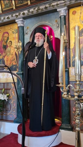 Τέλος, ευχήθηκε στον Σεβασμιώτατο κ. Ευστάθιο, με λόγους υιϊκού σεβασμού, και εκ μέρους του Σεβασμιωτάτου κ. Θεοκτίστου, διατελέσαντος Βοηθού Επισκόπου του με τον τίτλο του Ανδρούσης, αλλά και εκ μέρους των παρισταμένων Αρχών, του Ταξιάρχου της ΕΛΑΣ, των Κληρικών, των Μοναχών και του πιστού λαού, που είχε κατακλύσει το Ναό και τη Μονή, μακροχρόνιο και καρποβριθή Αρχιερατεία.