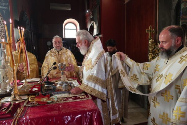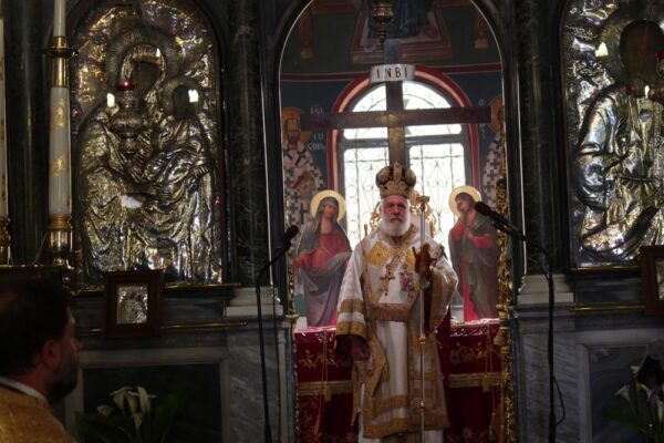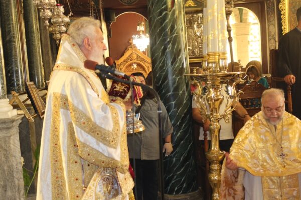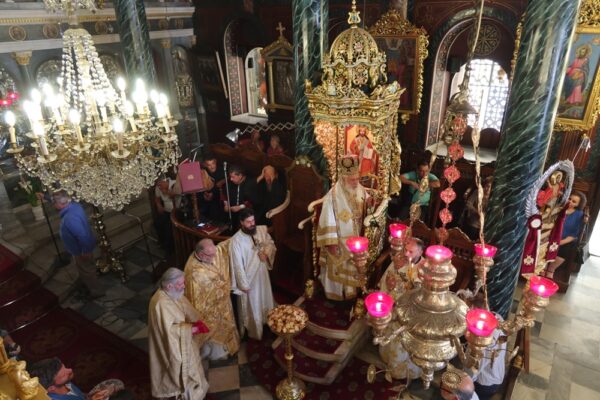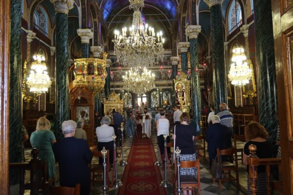 Ο Σεβασμιώτατος Μητροπολίτης Σύρου κ. Δωρόθεος Β´, ιερούργησε σήμερα στον Ιερό Ναό Κοιμήσεως Θεοτόκου, επιλεγομένη “των Ψαριανών”, με την παρουσία του Χωρικού Αντιπεριφερειάρχη Κυκλάδων κ. Γ. Λεονταρίτη, του Δημάρχου Σύρου-Ερμούπολης κ. Νικολάου Λειβαδάρα, του Προέδρου του Πρωτοδικείου Σύρου κ. Κωνσταντίνου Πασιαλή και πολλών πιστών, και ιδιαίτερα μικρών παιδιών, που παρακολούθησαν την Θεία Λειτουργία και προσήλθαν στο Μυστήριο της Θείας Ευχαριστίας, τηρώντας με προσοχή τις αποστάσεις, γεγονός που ανάγκασε πολλούς να παραμείνουν στον αύλειο χώρο του Ναού.