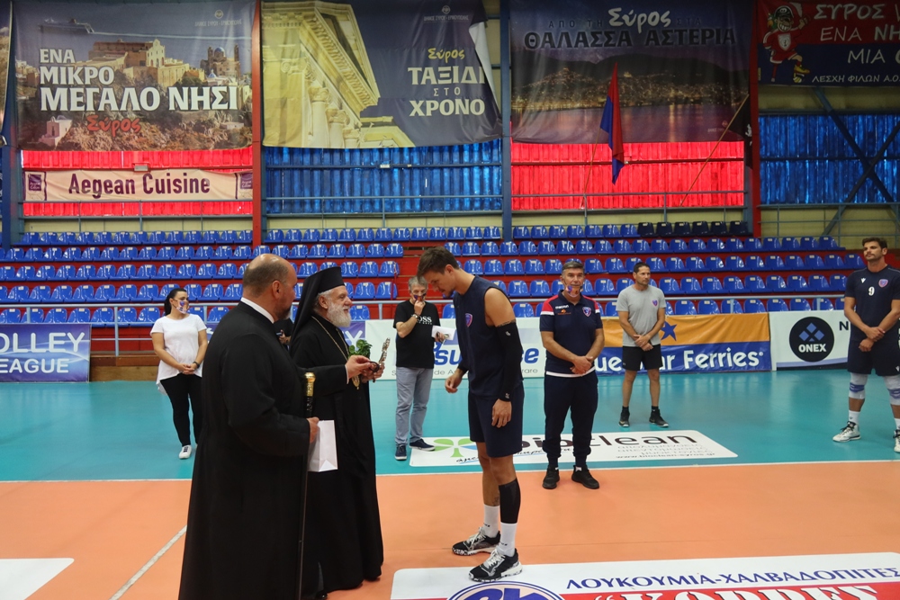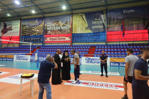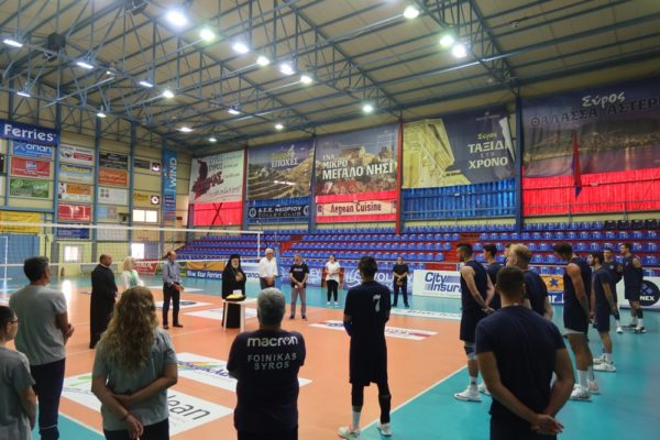 Προσκεκλημένος του Προέδρου του Αθλητικού Ομίλου «ΦΟΙΝΙΚΑΣ – ΟΝΕΞ» κ. Χρήστου Καφτηράνη, Προϊσταμένου της Πρωτοβάθμιας Εκπαίδευσης, ο Σεβασμιώτατος Μητροπολίτης Σύρου κ. Δωρόθεος Β’ τέλεσε τον Αγιασμό των νέων Γραφείων του, με την παρουσία των μελών του ΔΣ και φίλων του Ομίλου, της Δημοτικής Συμβούλου κας Αγγελικής Πρίντεζη και του Προέδρου του Επιμελητηρίου Κυκλάδων κ. Γ. Ρούσσου.