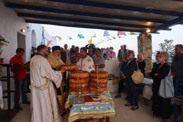 Και όπως ακριβώς», συνέχισε «εμείς απόψε, εν μέσω κακοκαιρίας, ανεβήκαμε το ανηφορικό αυτό μονοπάτι προς τον μικρό αυτό Ιερό Ναό, έτσι και στο πολυτάραχο πέλαγος της ζωής μας πρέπει να είμαστε προσηλωμένοι στο Φάρο τον πνευματικό, τον Ιησού Χριστό, ο Οποίος κατευθύνει το πλοίο της ζωής μας σε απάνεμα λιμάνια γαλήνης και σωτηρίας».