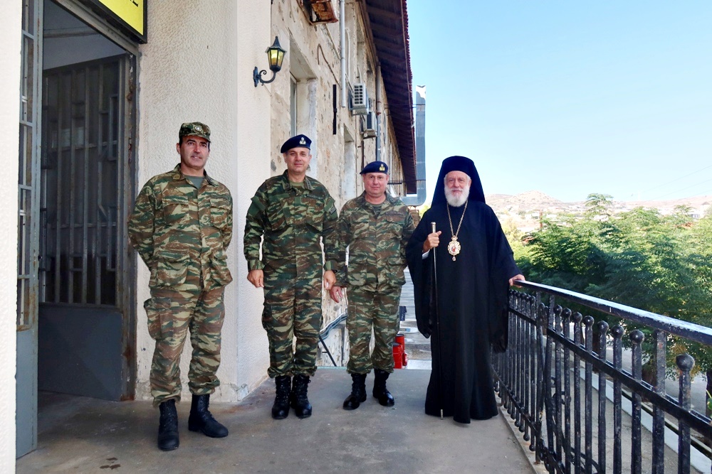 Ο Σεβασμιώτατος Μητροπολίτης Σύρου κ. Δωρόθεος επισκέφθηκε το Στρατόπεδο της Σύρου και τον νέο Διοικητή του Τάγματος Εθνοφυλακής Ερμουπόλεως Ανχη (ΠΖ) κ. Βαρυπάτη Ιωάννη, τον συνεχάρη για την ανάληψη των καθηκόντων του και του εξεδήλωσε την αμέριστη στήριξη της Ιεράς Μητροπόλεως στο έργο και τις ανάγκες του Τάγματος.