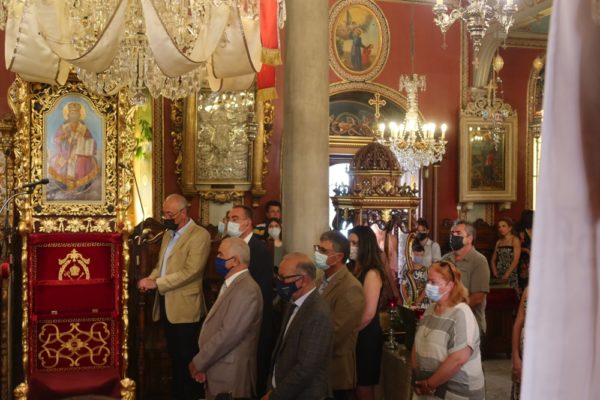 Παρέστησαν ο Επίσκοπος των ΡΚαθολικών Σύρου Σεβ. κ. Πέτρος, Συντονιστής της Αποκεντρωμένης Διοίκησης Αιγαίου κ. Πολύκαρπος Πολυχρονάκης, ο Χωρικός Αντιπεριφερειάρχης Κυκλάδων κ. Γ. Λεονταρίτης, ο Δήμαρχος Σύρου- Ερμούπολης κ. Νικ. Λειβαδάρας, ο Θεματικός Αντιπεριφερειάρχης Μεταφορών κ. Μ. Δαδάος, Αντιδήμαρχοι, Δημοτικοί Σύμβουλοι, οι Πρόεδροι των Τοπικών Κοινοτήτων Ερμούπολης και Άνω Σύρου, η Πρόεδρος Εφετών Αιγαίου, ο Διοικητής του Νοσοκομείου Σύρου κ. Μιχ. Ζουλουφός, Εκπρόσωποι του Στρατού, του Ναυτικού, της Αστυνομίας, της Πυροσβεστικής Υπηρεσίας και του Λιμενικού Σώματος, ο Διευθυντής της Πρωτοβάθμιας Εκπαίδευσης Κυκλάδων κ. Χρ. Καφτηράνης, οι Πρόεδροι του Εργατικού Κέντρου Κυκλάδων κ. Μ. Βουτσίνος και του Σωματείου Συνταξιούχων ΙΚΑ κ. Χάριτος, Εκπρόσωποι τοπικών φορέων και οργανώσεων, ο διατελέσας Βουλευτής κ. Ιω. Μανούσος, Εκπαιδευτικοί και αρκετοί πιστοί, που με προσοχή και τάξη προσήλθαν να ευχηθούν στον Σεβασμιώτατο Ποιμανάρχη τους.