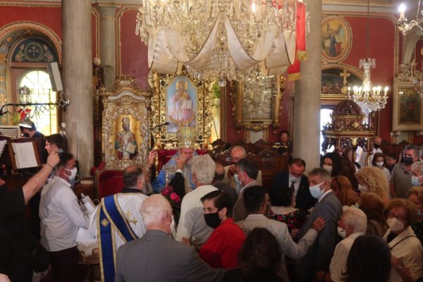 Τέλος, ευχαρίστησε όλους τους παρισταμένους και συνευχομένους, τους Εφημερίους του Μητροπολιτικού Ναού, για τον αρχοντικό προευπρεπισμό της εορτής, τους εκ Σύρου και Μυκόνου συνιερουργήσαντες Εφημερίους, τους Ιεροψάλτες, ευχήθηκε στον Εφημέριο του Αγίου Γεωργίου Αρχιμ. Δωρόθεο Γάγγο, ευχαριστώντας τον για την προς την Ιερά Μητρόπολη και τα Ιδρυματά της προσφορά του, και ευχήθηκε σε όλους «έτη Δωροθέεια»!