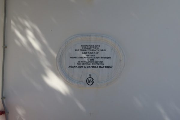 Το Νηπιαγωγείο, Βρεφονηπιακό και Παιδικό Σταθμό της Ιεράς Μητροπόλεως «ΣΤΗΝ ΠΑΛΑΜΗ ΤΟΥ ΘΕΟΥ», που στεγάζεται στις εγκαταστάσεις της Ιεράς Μονής Αγίας Βαρβάρας, στο Κίνι της Σύρου, επεσκέφθη την Παρασκευή 16 Σεπτεμβρίου ο κ. Δωρόθεος Β’.