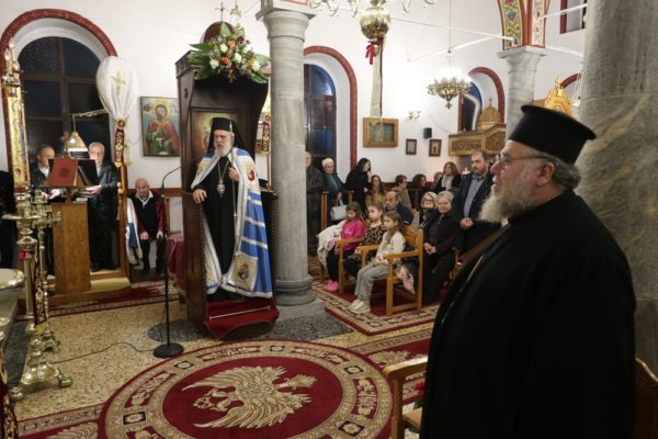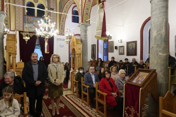 Τέλος, ευχαρίστησε και συνεχάρη τον Εφημέριο του Ναού, Πρεσβύτερο Δημήτριο Νίκα για την καλή διακονία του.