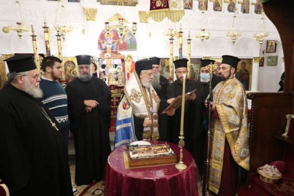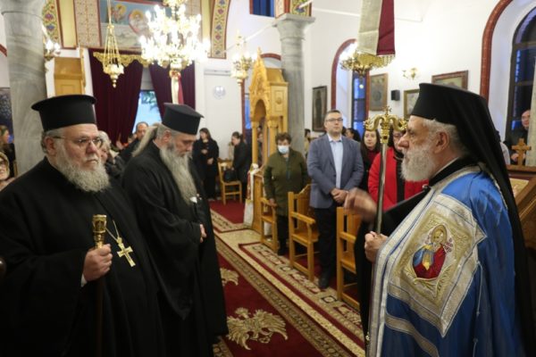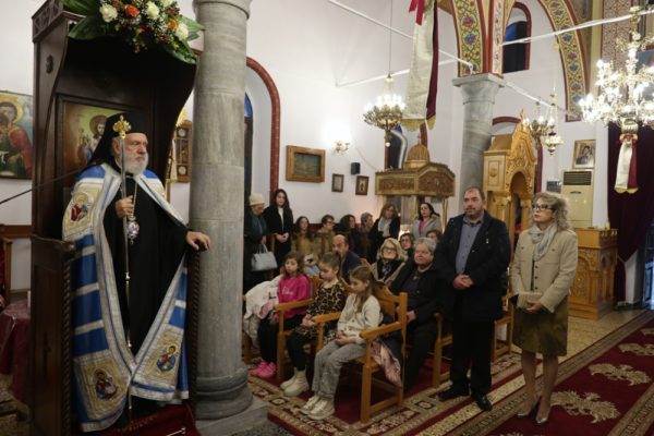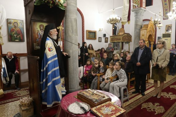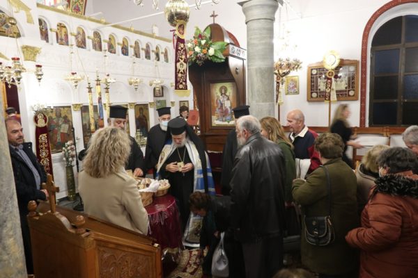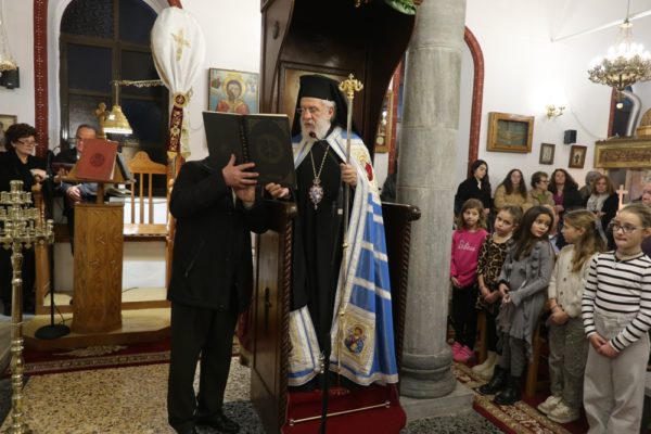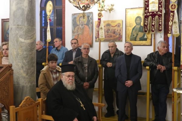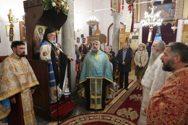 Τέλος, ευχαρίστησε και συνεχάρη τον Εφημέριο του Ναού, Πρεσβύτερο Δημήτριο Νίκα για την καλή διακονία του.