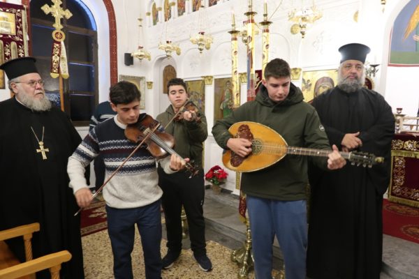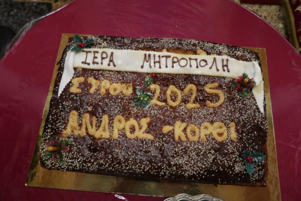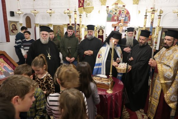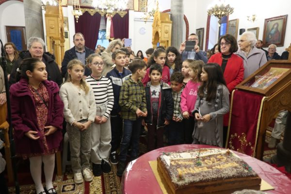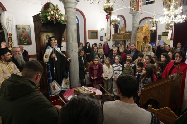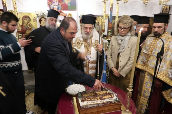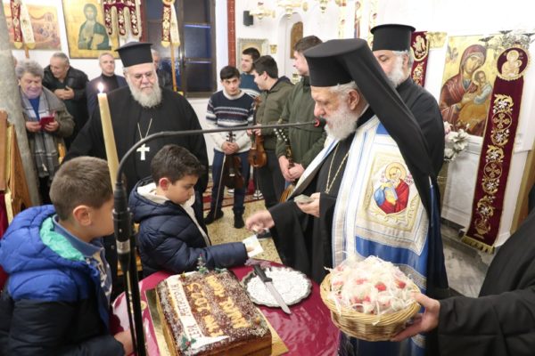 Ακολούθως, ο Σεβασμιώτατος κ. Δωρόθεος Β’ ευλόγησε την Αγιοβασιλειόπιττα, ενώ τα παιδιά, με συνοδεία μουσικών οργάνων, τραγούδησαν τα κάλαντα, και την διένειμε σε όλους, μαζί με ευχές, δώρα και ευλογίες.
