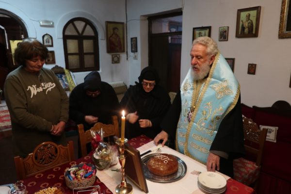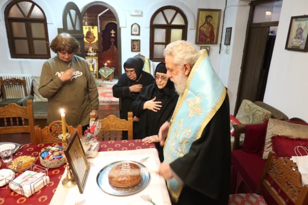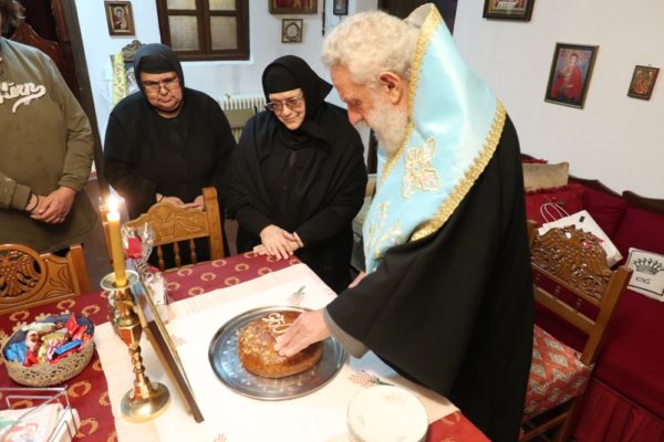 Στη συνέχεια, ο Σεβασμιώτατος επισκέφθηκε την Γυναικεία Ιερά Μονή Ζωοδόχου Πηγής Μπατσίου, όπου ευλόγησε την πίτα του Αγίου Βασιλείου και ευχήθηκε στις εκεί εγκαταβιούσες Μοναχές.