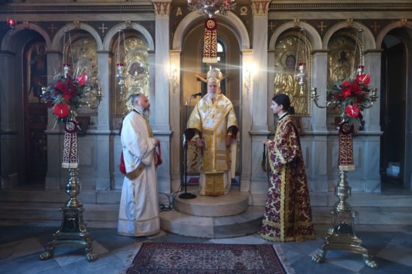 Ευχαρίστησε τον Μακαριώτατο Αρχιεπίσκοπο Αθηνών και Πάσης Ελλάδος κ. Ιερώνυμο Β΄, για την παρασχεθείσα άδειά του, τον Εφημέριο του Ναού, Αρχιμ. Πρόδρομο Σκορδαρά, για την υποδοχή και τη φιλοξενία του, την Βυζαντινή Χορωδία, για την κατανυκτική απόδοση των λειτουργικών ύμνων και τους πιστούς, για την παρουσία τους, ευχηθείς σε όλους για τα Ἀγια Χριστούγεννα.