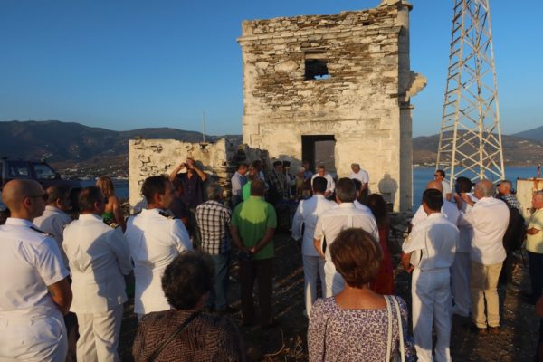 Αναλυτικότερα, ο Μητροπολότης Σύρου κ. Δωρόθεος Β’, με τη συμμετοχή του Αρχιμ. Καλλινίκου Τσούση, τέλεσε τον Αγιασμό ενόψει των εργασιών αποκατάστασης του ιστορικού Φάρου του Λιμένος Γαυρίου, υπό τους συνεχείς πανηγυρικούς συριγμούς των διερχόμενων πλοίων «SUPER STAR» και «ΘΕΟΛΟΓΟΣ Π», με την παρουσία του Διευθυντή της Υπηρεσίας Φάρων Αρχιπλοίαρχου κ. Νικολάου Ζαφειρίου ΠΝ, εκπροσωπούντος τον Αρχηγό του ΓΕΝ, Αξιωματικών του Πολεμικού Ναυτικού, του Λιμενάρχη Άνδρου και αξιωματικών του Λιμενικού σώματος, του Δημάρχου Άνδρου κ. Δημ. Λοτσάρη, των επικεφαλής της Αντιπολιτεύσεως του Δήμου Άνδρου, των Μελών της Ομάδας Μελέτης Αποκατάστασης του Φάρου, της Εκδότιδος της Εφημερίδας «ΑΝΔΡΙΑΚΗ» κας Μαρ. Φωτοπούλου και του Ανδρίου Καπετάνιου κ. Γιαννούλη Καμπάνη, ο οποίος χρηματοδοτείτην αποκατάσταση του μνημείου.
