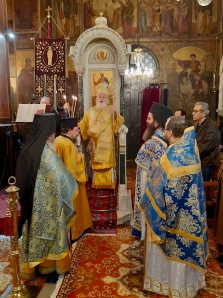 Συμμετείχαν συλλειτουργικά ο Προϊστάμενος του Ναού Πανοσιολ. Αρχιμ. Δωρόθεος Κιούση και άλλοι Εφημέριοι.