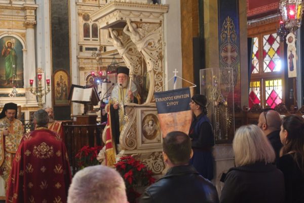 Ο ιδρυθείς το 1860 Σύνδεσμος Κρητών Σύρου εόρτασε στον Καθεδρικό Ναό του Αγίου Νικολάου την μνήμη των Αγίων Δέκα Κρητών Μαρτύρων, ιερά Εικόνα των οποίων φυλάσσεται από κτήσεώς του σ’ αυτόν.