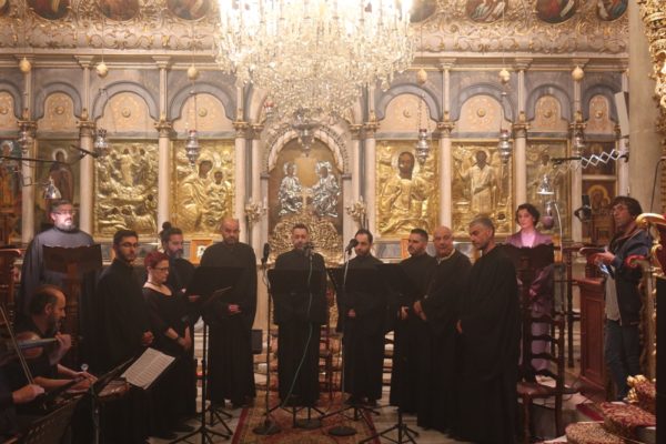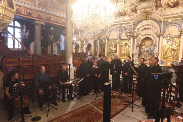 Τους ύμνους απέδωσε μελωδικότατα Βυζαντινός Χορός, οι Σπουδαστές της Σχολής, αποτελούμενος από την κα Βέργου Ρένα και τους κ.κ. Ασμή Λάζαρο, Δημητρόπουλο Αλέξανδρο, Δουλγέρη Στυλιανό, Ζακαίο Δημήτρη, Νάνο Θέμη, Τσούκο Λουκά, Χασανδρινό Κωνσταντίνο και Χασανδρινό Βασίλειο.