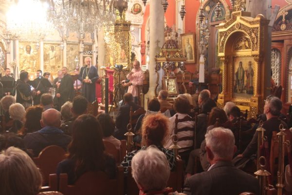 Ευχαρίστησε, επίσης, τους Εφημερίους του Ιερου Ναού για τον προευπρεπισμό της Εκδηλώσεως, τον Γραμματέα της Ιεράς Μητροπόλεως κ. Αλέξανδρο Μαρκουίζο, τα τοπικά ΜΜΕ, που την κάλυπταν ειδησεογραφικά , και τον Περιφερειακό Τηλεοπτικό Σταθμό “SYROS TV1”, που την αναμετέδιδε, και τους πιστούς που είχαν κατακλύσει τον περικαλή Ναό, και ευχήθηκε σε όλους για το Άγιο Πάσχα.