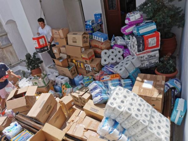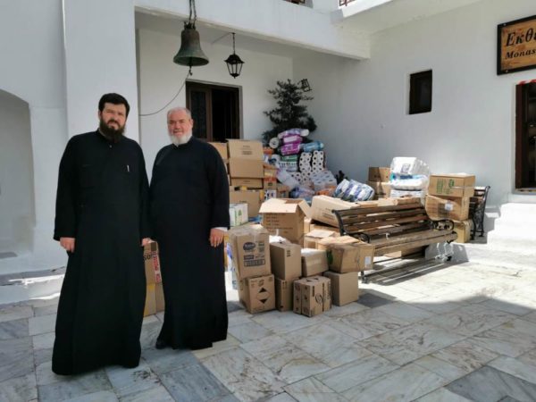 Μεμονωμένοι Μυκόνιοι και Σύλλογοι ανταποκρίθηκαν με θαυμαστή προθυμία στην πρόσκληση της Ιεράς Μονής Παναγίας Τουρλιανής και του Ιερού Μητροπολιτικού Ναού της Μεγάλης Παναγιάς και έσπευσαν να προσφέρουν τρόφιμα και αλλά χρειώδη είδη, τα οποία παρέλαβε σήμερα από τον Ηγούμενο Αλέξιο Παπαδόπουλο ο Διευθυντής του Οίκου Ευγηρίας Αρχιμανδρίτης Βενέδικτος Φραγκογιάννης.
