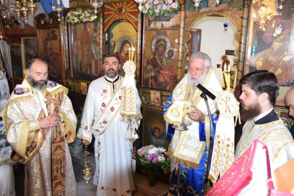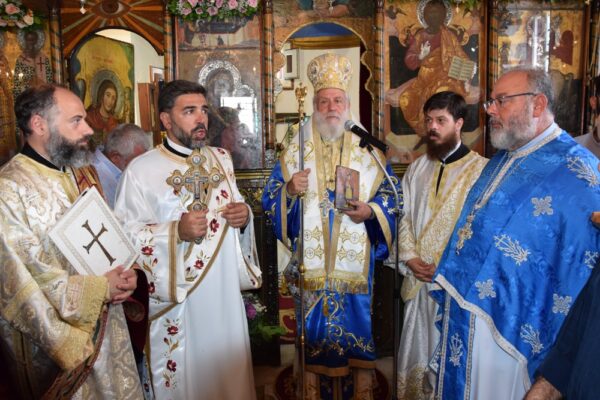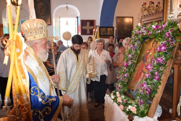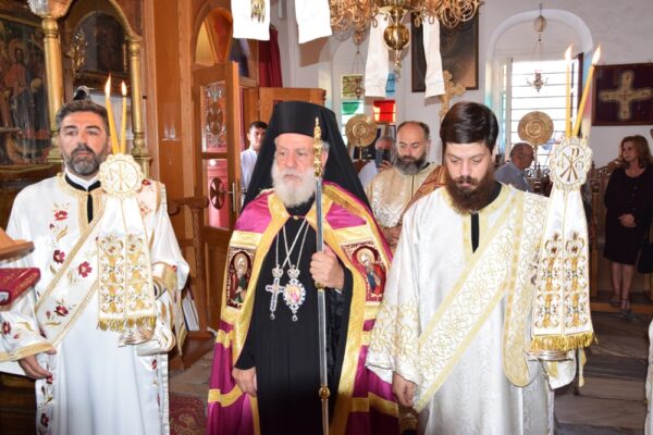Χαρακτήρισε δε ιδιαίτερα ενθαρρυντικό και ελπιδοφόρο το γεγονός ότι μεταξύ του εκκλησιάσματος ήταν πολλοί νέοι και παιδιά, στις ψυχές των οποίων αποτυπώνονται οι πολυαιώνιες παραδόσεις του λαού μας, τη σκυτάλη των οποίων θα παραλάβουν και θα την παραδώσουν με τη σειρά τους στους επερχομένους, σε μια συνεχή σκυταλοδρομία στο διάβα της Ιστορίας, συνεχάρη τον προνοιάρχη των Ναών κ. Σπυρ. Ξυδάκη για την εργώδη μέριμνα και ανιδιοτελή φροντίδα του προς αυτούς και ευχήθηκε στο πολυπληθές εκκλησίασμα για το επιόν φθινόπωρο.