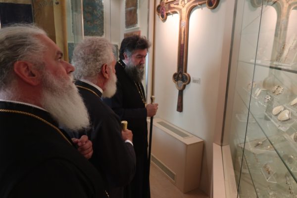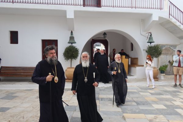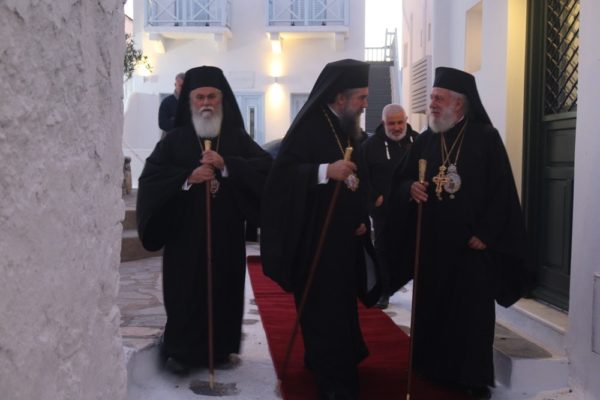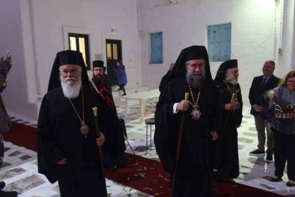 Οι Σεβασμιώτατοι το πρωί, μετά την άφιξή τους στη Μύκονο, επισκέφθηκαν προσκυνηματικώς την Ιερά Μονή Θεοτόκου Τουρλιανής, στην οποία τους ξενάγησε και φιλοξένησε ο δραστήριος Ηγούμενος Αρχιμ. Αλέξιος Παπαδόπουλος.