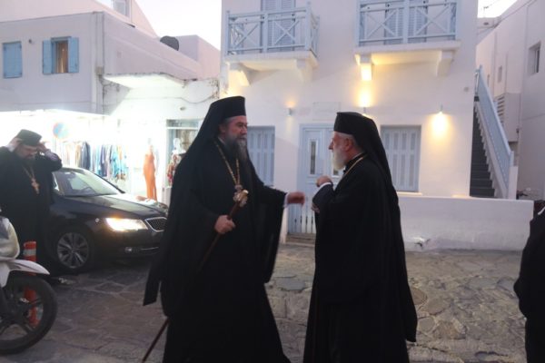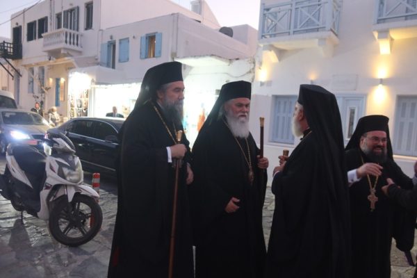 Συγχοροστάτησε ο Μητροπολίτης Σερρών και Νιγρίτης κ. Θεολόγος. Συμμετείχαν οι Εφημέριοι της νήσου, και παρευρέθηκε πλήθος πιστών, μεταξύ των οποίων ο Δήμαρχος Μυκόνου κ. Κωνσταντίνος Κουκάς, ο Διοικητής του Α.Τ. Μυκόνου και Δημοτικοί Σύμβουλοι.