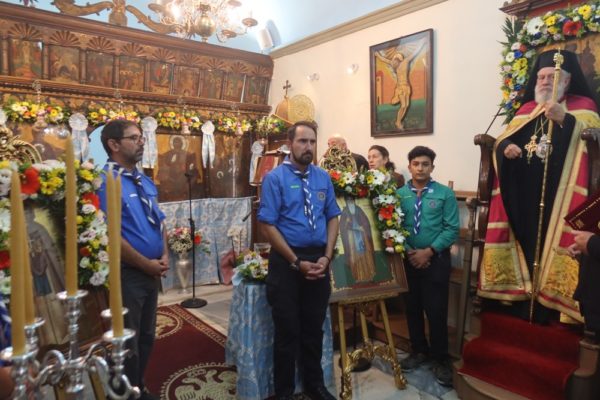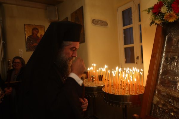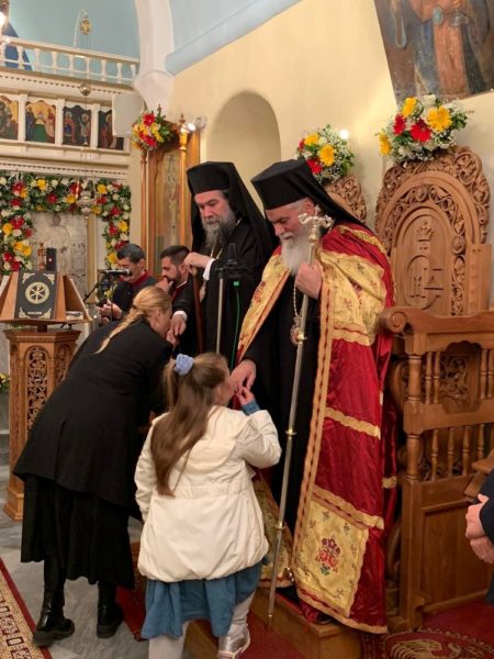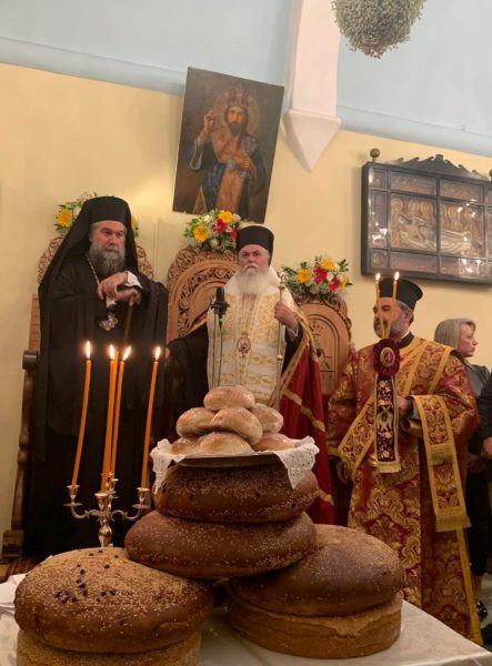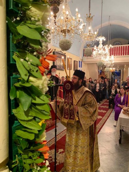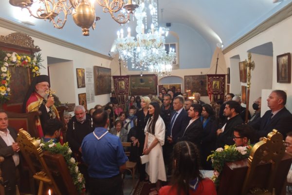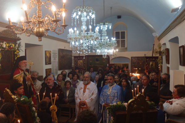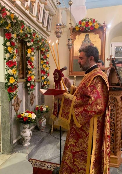 Ο Σεβασμιώτατος κ. Δωρόθεος Β’ προεξήρχε του Πανηγυρικού Εσπερινού στον Ιερό Ναό του Αγίου Γερασίμου, με τη συμμετοχή του Αρχιερατικού Επιτρόπου Άνω Μεράς και Παλαιοκάστρου, Πρωτοπρ. Βασιλείου Τζανιδάκη, και του Εφημερίου του Ναού Πρωτοπρ. Εμμανουήλ Γαλανάκη και με την παρουσία του Βουλευτού και διατελέσαντος Υπουργού κ. Ιω. Βρούτση, της Βουλευτού Κυκλάδων κας Αικατ. Μονογυιού, του Αντιδημάρχου και Δημοτικών Συμβούλων Μυκόνου, των διατελεσάντων Δημάρχων κ. Χρ. Βερώνη και κας Ειρήνης Γρυπάρη, του Προέδρου της «Μυκονιάτικης Αλληλεγγύης» κ. Αντ. Κουσαθανά πολλών πιστών, εντός και εκτός του Ναού.