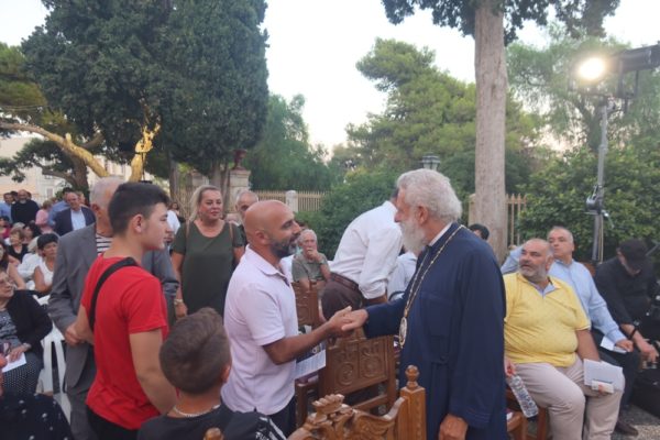 Προ του πέρατος της Εκδηλώσεως, ο Σεβασμιώτατος κ. Δωρόθεος Β’ συνεχάρη την Περιφέρεια Νοτίου Αιγαίου για την οικονομική κάλυψη των εξόδων της εκδηλώσεως, τον Δήμαρχο και το Δημοτικό Συμβούλιο για την ανάληψη του έργου φιλοτεχνήσεως της προτομής του Ανθίμου Γαζή, τους Καλλιτέχνες και ευχαρίστησε τους συντελεστές της, τον έχοντα την γενική επίβλεψη της προετοιμασίας και διοργάνωσης Αρχιερατικό Επίτροπο Σύρου, Πρωτοπρ. Φλαβιανό Αλμπέσκου, τον Περιφερειακό Τηλεοπτικό Σταθμό «Syros TV1» και τα τοπικά μέσα έντυπης και ηλεκτρονικής πληροφόρησης, και τους πολυπληθείς ακροατές της, προς τους οποίους ευχήθηκε για τον αρχόμενο μήνα της Παναγίας Αύγουστο και η Δημοτική Σύμβουλος κα Χρυσοβαλάντη Μονογυιού προσέφερε εξ ίδιων γλυκίσματα.