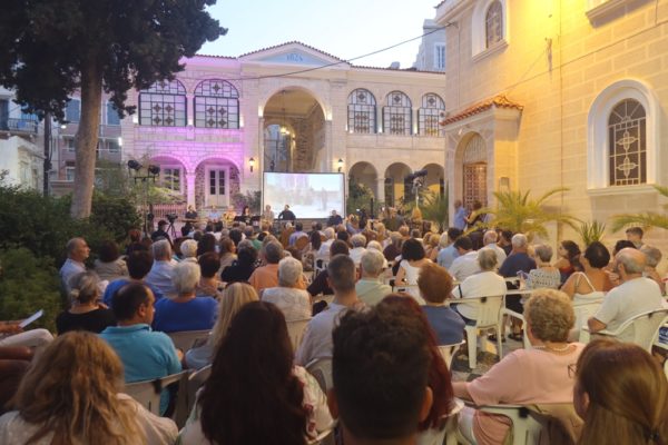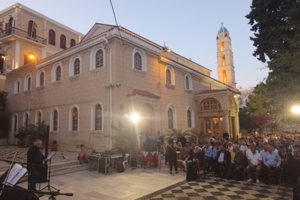 Λαοθάλασσα Συριανών και παρεπιδημούντων παραθεριστών κατέκλυσε απόψε τον αύλειο χώρο του ιστορικού Ιερού Μητροπολιτικού Ναού της Μεταμορφώσεως του Σωτήρος Ερμουπόλεως, όπου παρουσιάστηκε η Επετειακη Συναυλία, με τίτλο «Μικρασία-Χίος-Ψαρά-Σύρος: Μια προσφυγική διαδρομή» στα πλαίσια της έναρξης των εκδηλώσεων του εορτασμού των 200 ετών από την ανέγερσή του και σιγοτραγουδήσαν με τους Καλλιτέχνες κα Κατερίνα Παπαδοπούλου και κ.κ. Χρήστο Τσιαμούλη, Βασίλη Κασούρας, Κυριάκο Γκουβέντα, Βαγγέλη Τσαγανό και Απόστολο Μάτη παραδοσιακά τραγούδια από την Κωνσταντινούπολη, τη Μικρασία και τα νησιά του Αιγαίου.