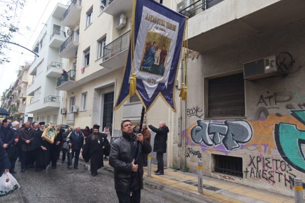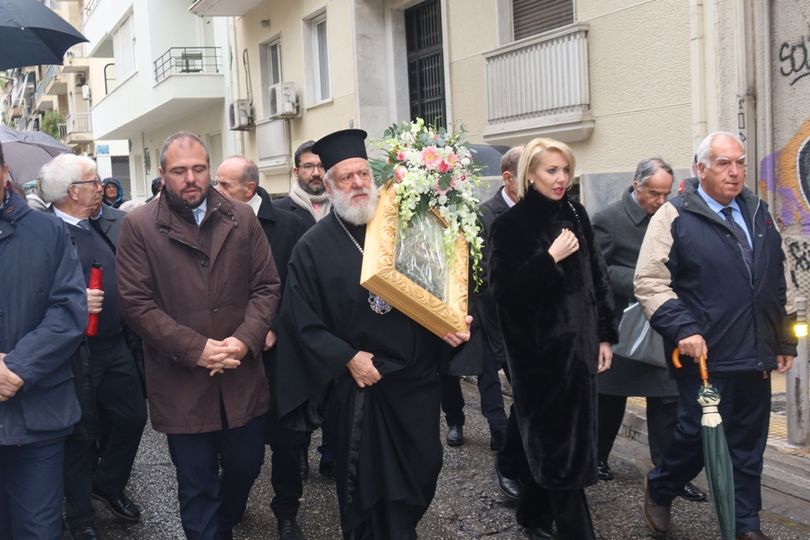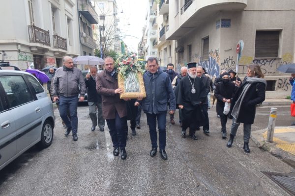 Μετά το πέρας της Θείας Λειτουργίας και την Αρτοκλασία, το αντίγραφο της Αγίας Εικόνας, που είχε μεταφερθεί στο Ναό, επέστρεψε, παρά την συνεχή βροχόπτωση, στα Γραφεία της Αδελφότητος, επί της οδού Αλεξάνδρας, όπου φυλάσσεται, με λιτανευτική πομπή, πλαισιουμένη από τη Τμήμα της Φιλαρμονικής του Λιμενικού Σώματος, που ευγενώς παρεχώρησε ο Ενδοξώτατος Αρχηγός του Λιμενικού Σώματος, Αντιναύαρχος κ. Γεώργιος Αλεξανδράκης.