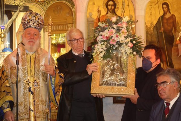 Ο Σεβασμιώτατος ιερούργησε σήμερα Κυριακή 5 Φεβρουαρίου 2023 στον Ιερό Ναό του Αγίου Βασιλείου, της οδού Μετσόβου, στην Αθήνα, με την άδεια και ευλογία του Μακαριωτάτου Αρχιεπισκόπου Αθηνών και Πάσης Ελλάδος κ. Ιερωνύμου, τον οποίο εξεπροσώπησε ο και Προϊστάμενος του Ναού Πανοσιολ. Αρχιμανδρίτης Δωρόθεος Κιούσης, επι τη εορτή της Αδελφότητος των εν Αθήναις Τηνίων και τη 200ή επετείω από της Ευρέσεως της Αγίας Εικόνος της Μεγαλόχαρης.