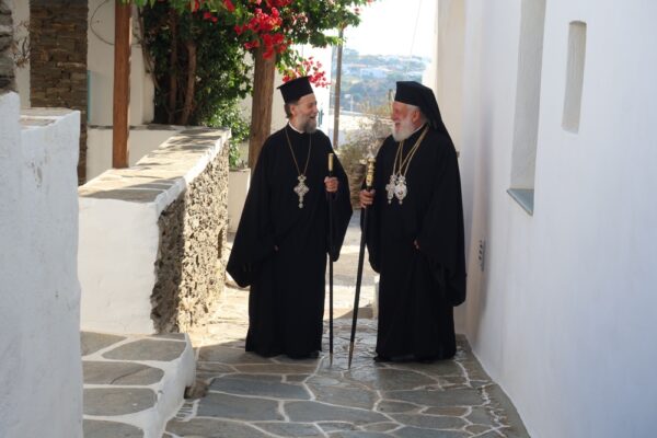 Προ του πέρατος της Θείας Λειτουργίας, η οποία αναμεταδόθηκε απ’ ευθείας μέσω του περιφερειακού τηλεοπτικού σταθμού «Syros TV1», ο Σεβασμιώτατος απένειμε το οφφίκιο του Πρωτοπρεσβυτέρου στους επί δεκαετίες διακονούντες τους Ιερούς Ναούς Ζωοδόχου Πηγής Κάτω Πεταλίου και Γενεσίου της Εισοδείων της Θεοτόκου Κάστρου, Αιδεσιμωτάτους Γεώργιο Τσάλλα και Ιωάννη Κουμάκη.