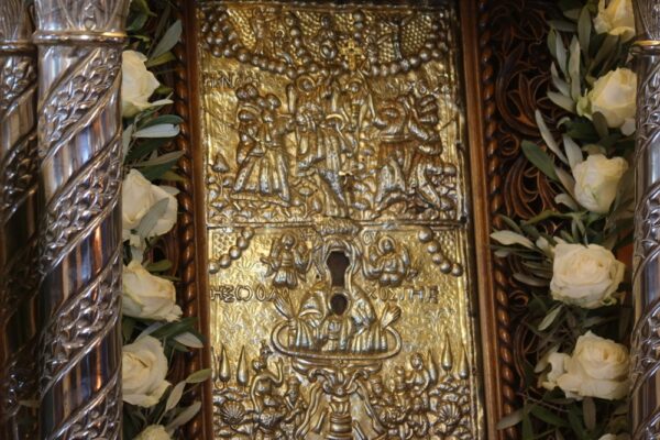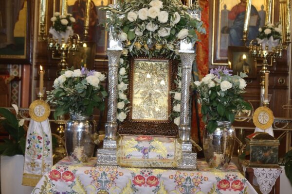 Μετά το πέρας της Θείας Λειτουργίας ακολούθησε λιτή λιτάνευση της Ιεράς Εικόνας της Παναγίας Χρυσοπηγής. Ο Σεβασμιώτατος κ. Δωρόθεος Β’ επιστρέφει το εσπέρας στην Ερμούπολη.