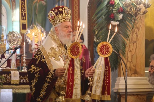 Ευχαρίστησε, τέλος, και συνεχάρη τους Εφημερίους του Ναού, Αρχιμ. Νικόλαο Γαβαλλά και Αντώνιο Χαλά, τους Επιτρόπους και τους διακονητές, καθώς και τη Χορωδία «Αντιφωνικό Μέλος», που και σήμερα απέδωσε τους ύμνους της Θείας Λειτουργίας και απηύθυνε σε όλους τις Αναστάσιμες ευχές του.