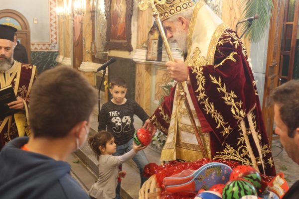 Κατά την απόλυση, ο Σεβασμιώτατος κ. Δωροθεος Β’ διάνειμε δώρα στα παιδιά και σε όλους Πασχάλια αυγά, που είχαν προηγουμένως ευλογηθεί στο Ναό.