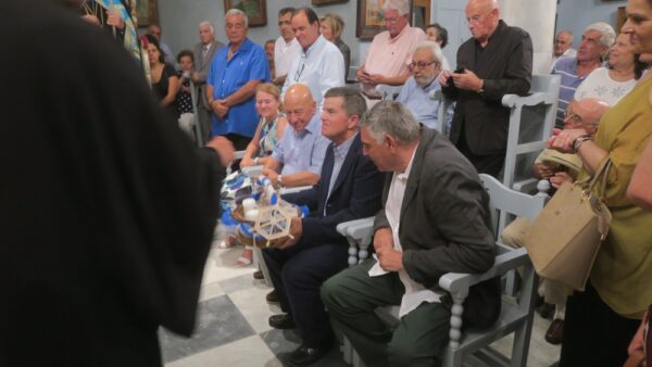 Στην ομιλία του, ο Σεβασμιώτατος κ. Δωρόθεος Β΄, εξ αφορμής του στίχου του Παροιμιαστή “Γυναίκα ανδρείαν τις ευρήσει;”, αναφέρθηκε στην αρετή της φιλανθρωπίας, την οποία οι άνθρωποι πρέπει να διακονούν με αγάπη και δάκριση, και ευχαρίστησε και συνεχάρη τον παριστάμενο Μεγάθυμο Εθνικό Ευεργέτη, Προνοιάρχη και Σεβαστοκράτορα του Ιερού Ναού κ Αθανάσιο Μαρτίνο για τις πολλαπλές ευεργεσίες του προς την Ιερά Μητρόπολη και για την χορηγία του προς ανέγερση Παρεκκλησίου στο Υπουργείο Νησιωτικής Πολιτικής, στα θυρανοίξια του οποίου παρέστη προσφάτως, με την ευλογία του Σεβασμιωτάτου Μητροπολίτου Πειραιώς κ. Σεραφείμ και ύστερα από πρόσκληση του Ενδοξοτάτου Αρχηγού του Λιμενικού Σώματος κ. Σταματιου Ράπτη, και του προσέφερε απλό, αλλά περίτεχνο δημιούργημα, που κατεσκεύασαν τα παιδιά του Θερινού Κέντρου Δημιουργικής Απασχόλησης, ως έκφραση ευχαριστιών για τη φιλοξενία στον αύλιο χώρο του Ναού της εορτής λήξεως της εφετινής περιόδου λειτουργίας του και για την εν γένει στήριξη λειτουργίας του κατασκηνωτικού κέντρου.